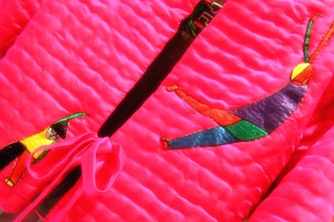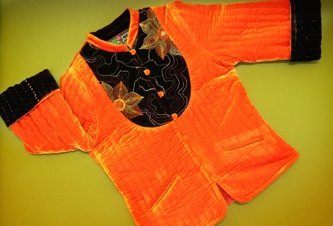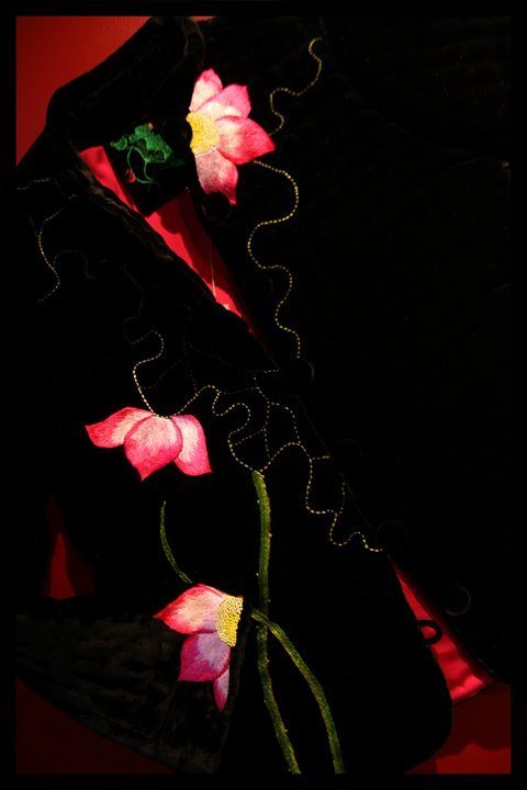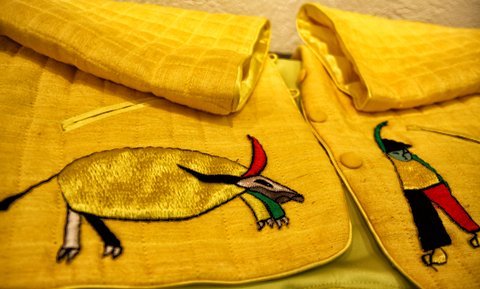 | Chiếc áo bông thêu những họa tiết trong tranh của Lê Thiết Cương. |