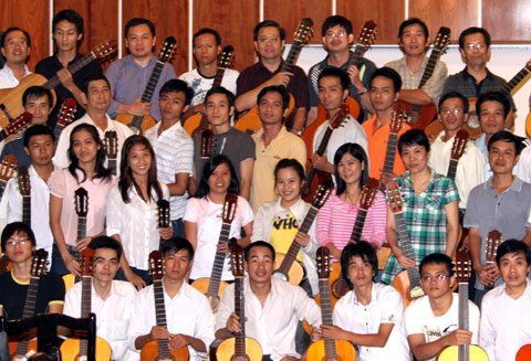 Clip 100 người cùng chơi guitar bên sông Hồng