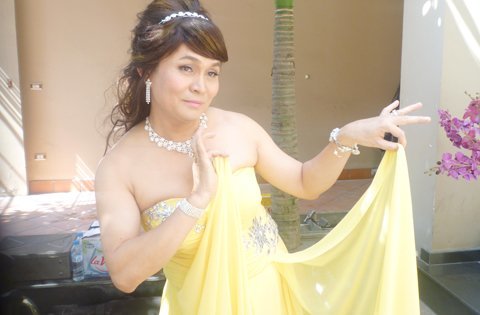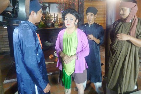 Xuân Hinh giả gái trong tiểu phẩm "Bắt đền đại gia".