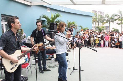 “Sân khấu” cũng “lạ”, chỉ có bộ loa công suất vừa phải, truyền âm thanh từ giọng hát, nhạc cụ được chơi “live” đến khán giả, tạo nên sự giao tiếp mặt đối mặt. Chị Huệ bảo, phần biểu diễn của ban nhạc đồng quê Mary McBride đến từ Mỹ, “nghe không hiểu chi mô, nhưng mà thích lắm”. Ca sĩ được chị Huệ nhận xét là “có giọng hát hay, xịnh đẹp, các bài hát có giai điệu tươi vui, nhẹ nhàng” chính là đại sứ văn hóa của Bộ Ngoại giao Hoa Kỳ, đã lưu diễn qua nhiều nơi trên thế giới. “Sân khấu bệnh viện’, hẳn không có nhiều khán giả từng nghe Mary McBride hát ca khúc nổi tiếng của cô là “No one’s gonna love you like me” trong bộ phim từng đoạt giải Oscar ‘Brokeback mountain” của đạo diễn Lý An hay các album nhạc của cô ca sĩ này; nhưng chứng kiến lối trình diễn hết sức gần gũi, giản dị của ca sĩ, ban nhạc và nhìn vào ánh mắt, tiếng vỗ tay, niềm vui thể hiện trên gương mặt của bệnh nhân, người xem không còn thấy khoảng cách lớn của sự “bất đồng ngôn ngữ”. Khán giả - bệnh nhân nghe Mary McBride hát nhạc Mỹ cũng giống như khi nữ ca sĩ cầm giấy hát bài dân ca Nam bộ “Lý chiều chiều” với tiếng phát âm lơ lớ: “Chiều chiều, ra đứng tây lầu tây…”.