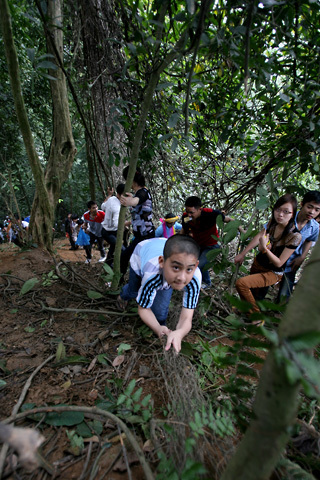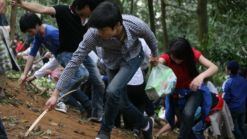 Nhiều du khách liều mạng leo theo các sườn núi