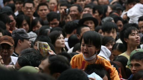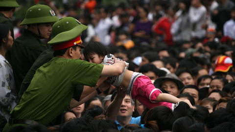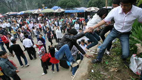 ![]() Hàng triệu du khách đổ về dự lễ Giỗ Tổ tại khu di tích lịch sử Đền Hùng sáng 12/4. ![]() Do lượng khách quá đông, nhiều du khách không chịu xếp hàng mà sẵn sàng tìm đủ mọi cách leo trèo miễn sao lên được Đền trước. ![]() ![]() Nhiều trẻ nhỏ do bị chen lấn công với nỗi sợ hãi đã gào khóc ![]() |
