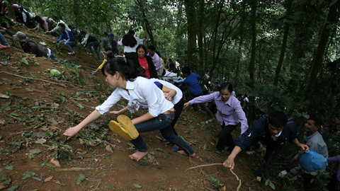 ![]() ![]() ![]() ![]() Người leo tận dụng từng chiếc rễ cây, thân cây non... để bám trong khi leo. ![]() Đền Trung kẹt cứng người đến lễ, nhiều người không thể len vào trong Đền đành đứng vái vọng từ sân. ![]() |