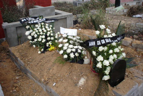 Mộ đắp xong, những vòng hoa cúc trắng được đặt lên. Đọc các dòng chữ trên vòng hoa nghe nghèn nghẹn: “Gia đình cậu viếng cháu”; “Bạn cùng học thương viếng linh hồn bạn”; “Anh kết nghĩa thương viếng em”…