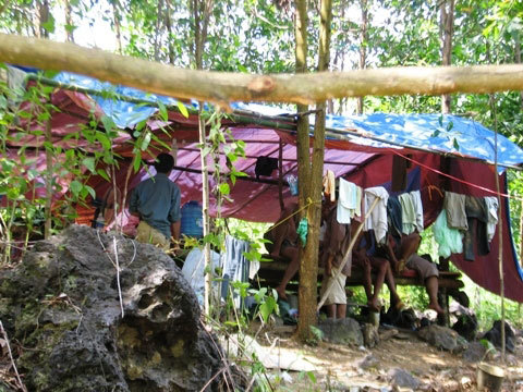 Để phục vụ cho việc đào bới tìm vàng, “vàng tặc” đã kéo một đường dây điện dài khoảng 1,5 km từ xã Thượng Quảng lên đồi keo. Bóng đèn, quạt máy và hai lán trại phục vụ cho việc ăn ở đã được dựng lên.