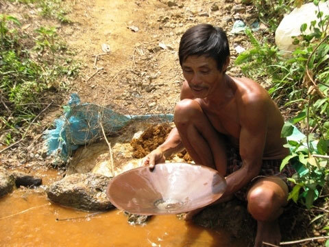| Đãi thử vàng trong những hầm vàng mới khoét. |