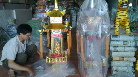 Anh Nguyễn Văn Như, chủ cơ sở sản xuất đồ thờ cúng bằng vải lụa ở ngay đầu làng không buồn phân trần: cả làng, có lẽ duy nhất có mỗi nhà tôi không làm hàng mã. Nhà tôi chỉ làm đồ thờ cúng bằng vải, cũng không thiếu bất kỳ thứ gì trên đời: ông hổ, ông voi, lọng, tán, ngai thờ…