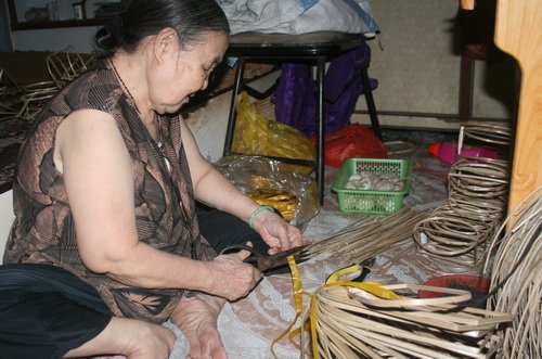 Bước vào nhà 423/6 Lạc Long Quân, cô gái trẻ Nguyễn Thị Bích đang ngồi chẻ từng chiếc nan. Bàn tay người thợ mềm mại tách từng thẻ lồ ô thành những nan lồng đèn thuần thục và nhanh nhẹn. Bích cho biết, lồ ô bây giờ lên giá quá. Năm trước khoảng 10.000đ/cây nhưng năm nay đã 50.000đ. Kiếm được đồng lời trong thời buổi này quả là rất khó.