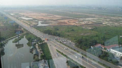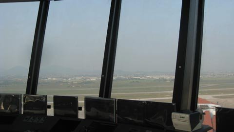 Quan sát từ Đài kiểm soát không lưu Nội Bài, sân bay Quốc tế Nội Bài trông rất nhỏ bé.