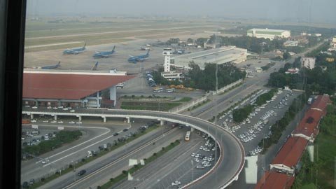 Từ Đài không lưu Nội Bài nềin xuống công trình thi công nhà ga T2 Nội Bài.