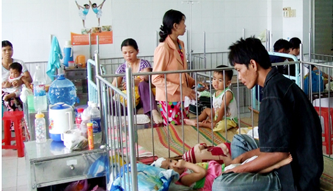 Đến trưa 17/11 tại Khoa truyền nhiễm của bệnh viện tỉnh, chúng tôi ghi nhận có thêm 14 trẻ mới vừa nhập viện trong 2 ngày (6-17/11). Tất cả đều trong tình trạng nổi mụn ngoài da, sốt và ói mửa thuộc diện bệnh nặng nên cách ly với Khoa Nhi.