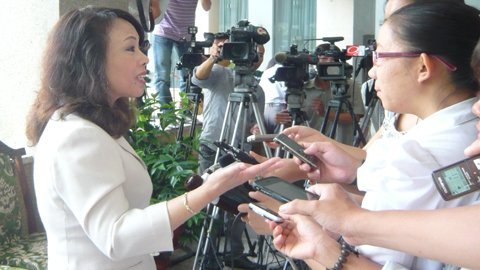 | Bộ Trưởng Y tế Nguyễn Thị Kim Tiến cảnh báo người dân không nên dùng thuốc điều trị tay chân miệng bừa bãi. Ảnh: Thanh Huyền. |