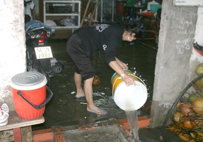 Nước lên rất nhanh, chỉ trong khoảng 15 phút mực nước lên cao đến nửa vách. Hàng
