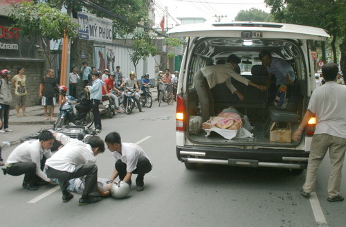 đổ lăn ra. Người hiếu kỳ vẫn trơ mắt đứng nhìn, không ai có một động thái nào cứu giúp nạn