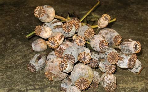| Từng bó quả cây thuốc phiện được người dân miền núi cất giữ sau khi thu hoạch, chuẩn bị cho vụ mùa năm khác. |