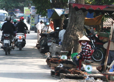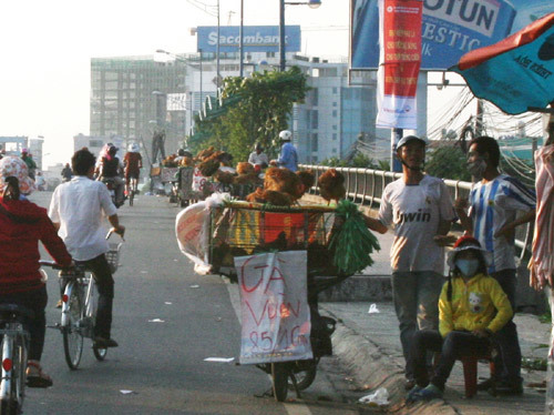 Tương tự trên cầu An Lộc (giáp ranh quận 12 và quận Gò Vấp) xe máy chở gà dàn thành hàng dài trên cả hai lề cầu. Người bán, người mua dường như chẳng quan tâm đến thông tin dịch bệnh H5N1 đang có nguy cơ bùng phát.