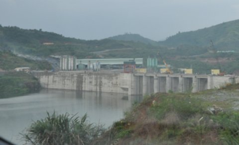| Bờ đập chính sông Tranh 2 chụp từ xa |