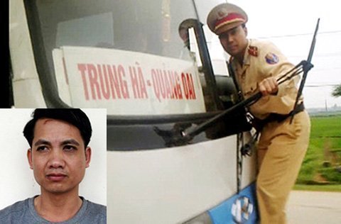 Sau đó tài xế này nhảy lên buồng lái điều khiển xe đâm vào lực lượng CSGT. Theo phản xạ, Trung úy Nguyễn Mạnh Phan nhảy lên đu bám vào cần gạt nước để tránh cú đâm trực diện.