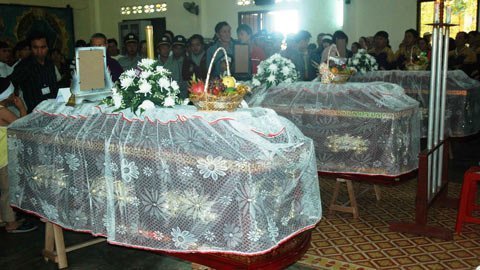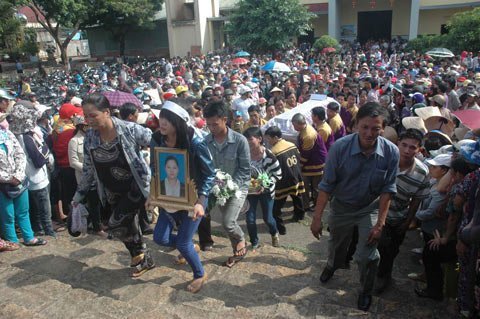 | Hàng trăm người tới tiễn đưa 3 chị em xấu số |
