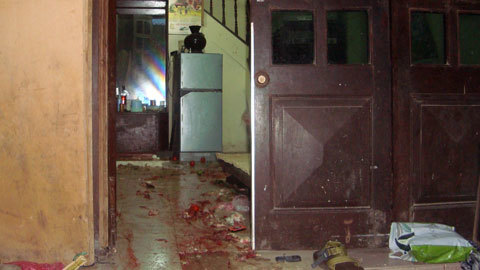 Những dấu vết để lại ở hiện trường cho thấy, Thiện đã chém vợ từ trên tầng 2 rồi sau đó lôi xuống tầng 1 và tiếp tục xuống tay với vợ.