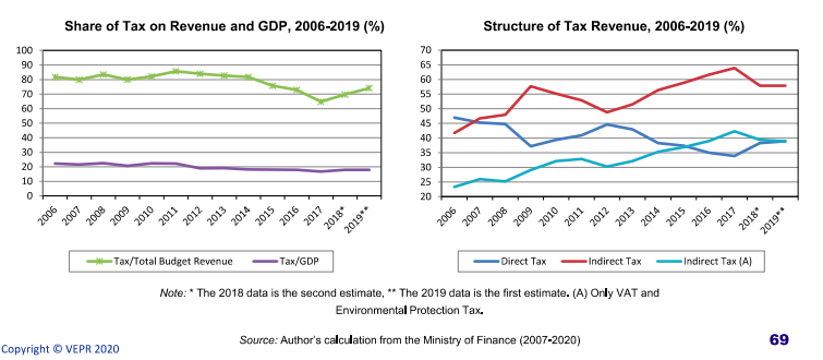 In terms of tax structure, the proportion of indirect tax in the total tax revenue has increased substantially up to more than 60% while the direct tax accounts for less than 40%. This has made Vietnam’s taxation system less progressive, VEPR said.