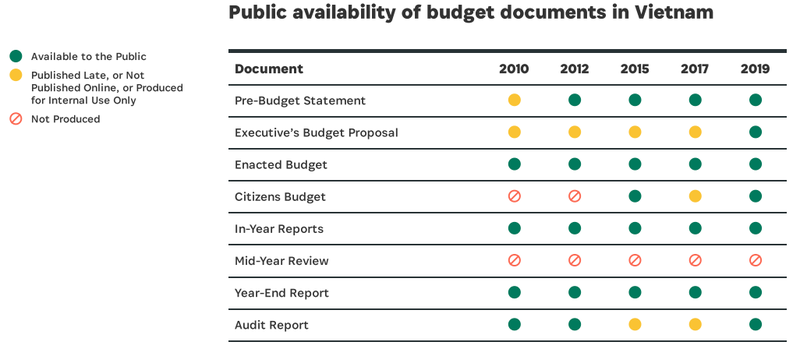 The OBS 2019 suggested Vietnam has increased the availability of budget information, by publishing the executive’s budget proposal, the citizens budget and audit report online in a timely manner, as well as increasing the information provided in the in-year reports.