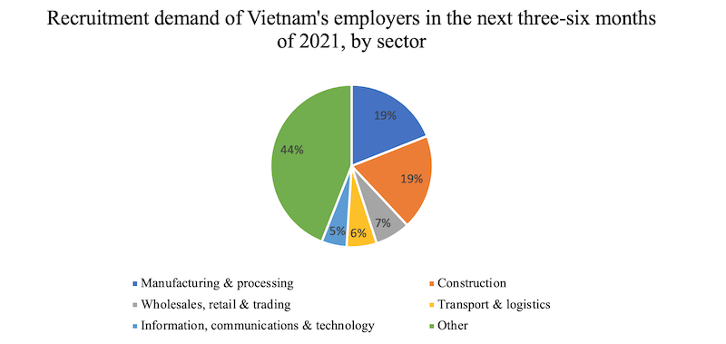 Nearly 60% of Vietnam’s employers have planned to recruit more in the first half of this year, despite the ongoing impact of Covid-19 pandemic, according to the latest ManpowerGroup Vietnam’s 2021 Employment Outlook survey.