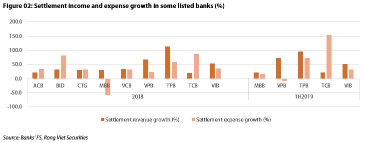 However, it should be noted that by these initiatives banks will have to sacrifice a part of their service fee income for CASA ratio. Fee exemption policy limits the growth of settlement income and refund policy escalates the growth of settlement expense. For Techcombank's case, income from payment activities in 2018 increased by 20.3% year-on-year while the cost from payment activities increased by 86.5% year-on-year. The corresponding growth rates for the first half of 2019 are 22% and 152.8%.