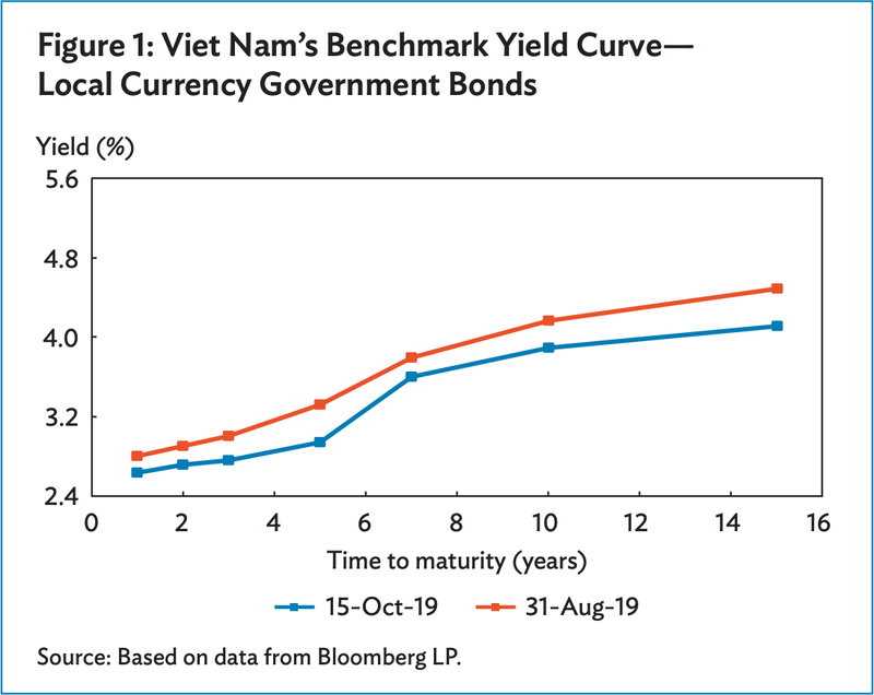 Vietnam’s local currency government bond yield curve shifted downward between August 31 and October 15. Bond yields for all tenors fell, with yields shedding an average of 26 basis points (bps) across the curve. The 5-year tenor and 15-year tenor declined the most at 38 bps each. Yields generally fell more at the longer end than the shorter end of the curve, leading to a narrowing of the 2-year versus 10-year yield spread from 126 bps on August 31 to 118 bps on October 15.