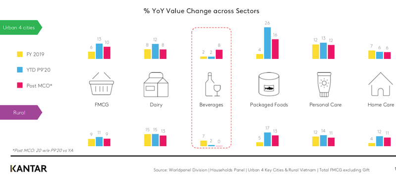 Among hot categories, personal care recorded 13% growth in the period. Beverage market has recovered with 8% growth in post-Covid-19 in four cities (including Hanoi, Danang, Can Tho and Ho Chi Minh City), while still struggled to bounce back in rural areas in post lockdown periods.
