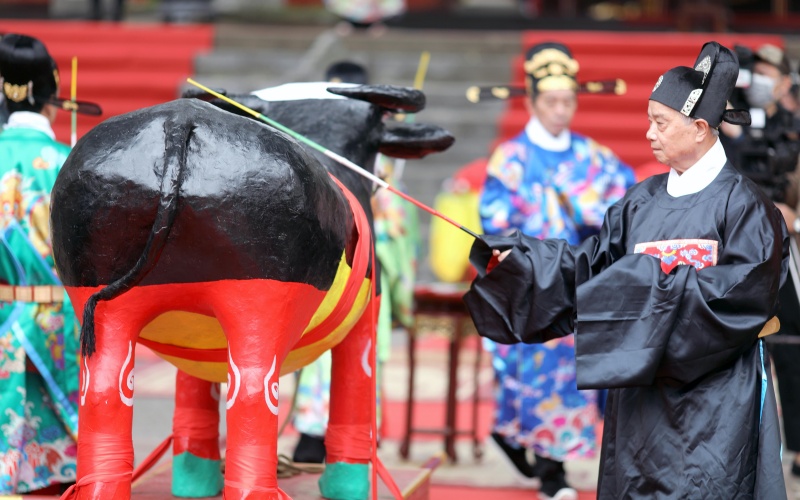 The "Tien Xuan Nguu" ritual (The ceremony of offering an earthen buffalo in Spring) was the only worship rite which was held during the Le Trung Hung dynasty with the meaning of "expelling the winter cold" and “wishing for a year of both good weather and harvests.” According to cultural experts, "Tien Xuan Nguu" has always had great cultural value and was usually performed in front of the Kinh Thien Palace.