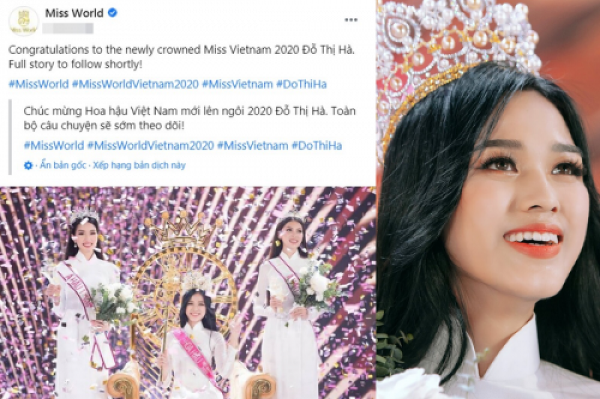 The upload to the social media account of Miss World stated, “Congratulations to the newly crowned Miss Vietnam 2020 Do Thi Ha. Full story to follow shortly!”