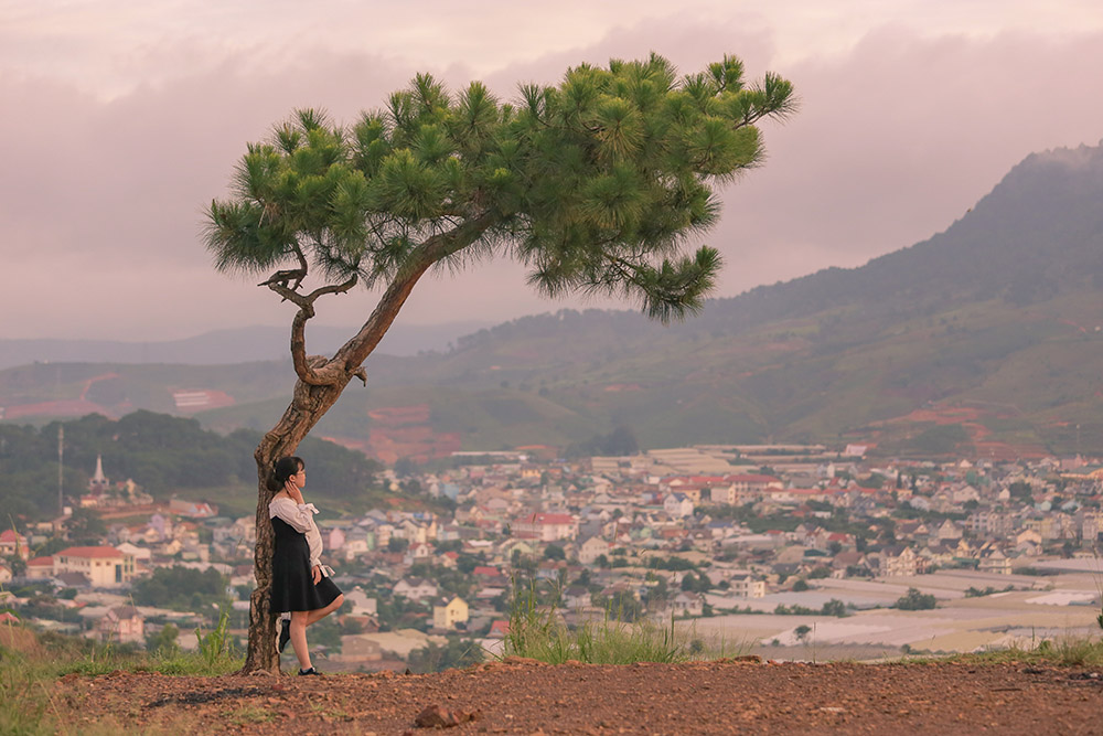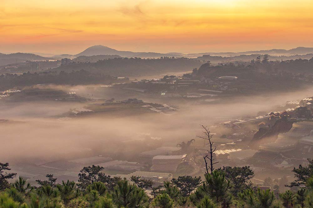 Standing on the top of the hill, one can behold the dawn visage set against a panoramic view of Da Lat city.