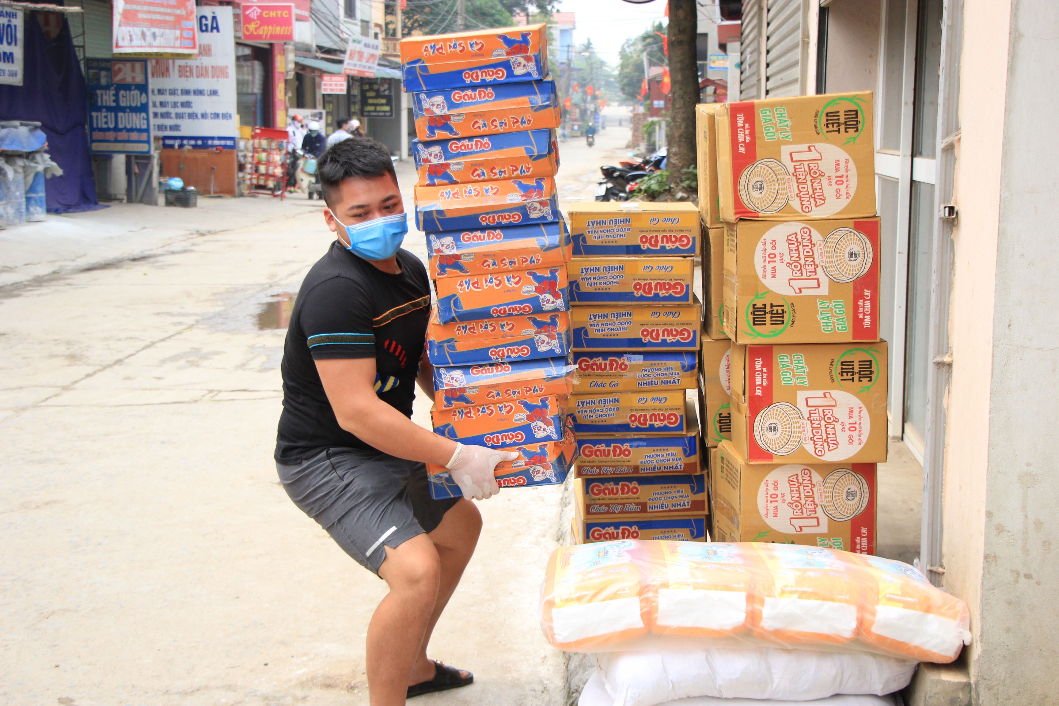 On April 10, three checkpoints have been set up to prevent people from entering and leaving Ha Loi Village. All items transferring into the village must be reported, checked and disinfected. The family members then called their relatives to go out to take the food home.