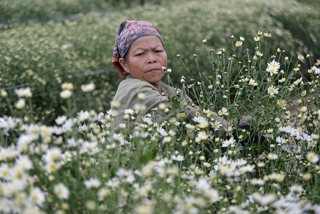 Meanwhile, in the garden, the farmers are busy with harvesting daises to be sold at markets.