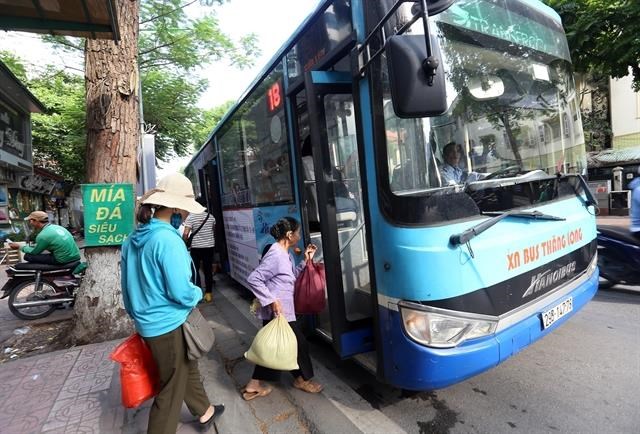 A bus picks up passengers in Hanoi |