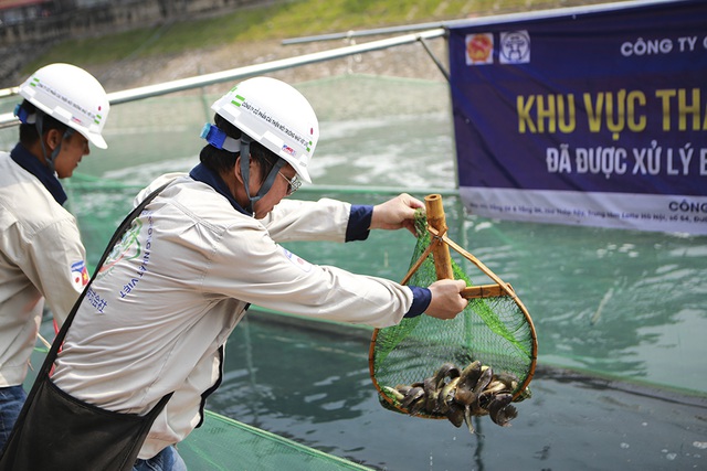 This morning, environmental experts from Japan and Vietnam released the fish at the two sections of To Lich River and West Lake which have been treated for pollution with Nano-Bioreactor technology.