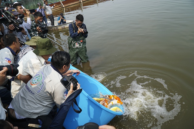 Japanese Koi and Vietnamese Tam Duong carp were released into the To Lich River and West Lake in Hanoi today, September 16.