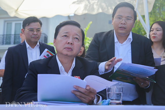 Minister of Natural Resources and Environment Tran Hong Ha has visited the site and checked the water treatment project at the To Lich River.