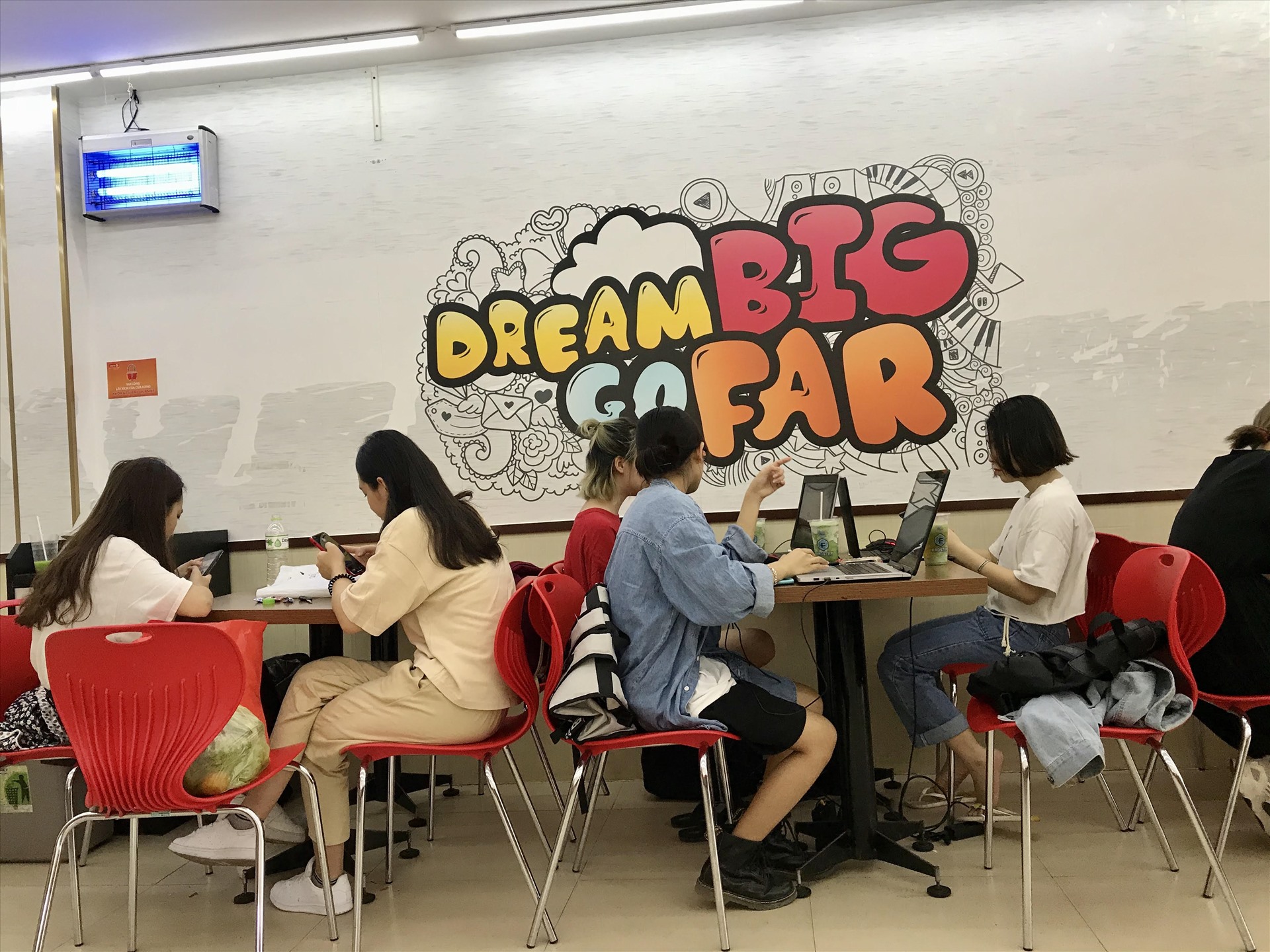 Tram Anh, a first-year student from the Institute of Policies and Development, said that her room did not have an air conditioner, so the store was better for her to study. It was also convenient for her to order food.