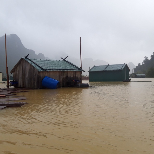 The recent floods have put hundreds of thousands of houses in Quang Binh under water. People had to remove part of their roofs so they can call for help. In Le Thuy District, the flood surpassed the historic levels of 1979.
