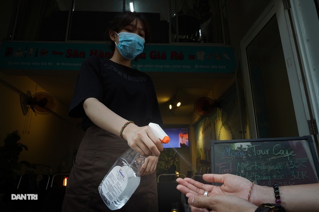 A coffee shop in Phu Nhuan Street also applies Covid-19 prevention and control regulations.