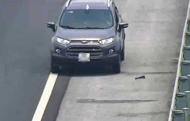 An automobile being reversed on the Hanoi-Hai Phong Highway. The photo was taken by camera and sent to police. - Photo Courtesy of the Vietnam Infrastructure Development and Finance Investment Joint Stock Company