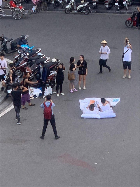 Many Vietnamese couples want special wedding photos, but the blankets and pillows, and intimate shots on the streets from this young couple caused a fair bit of controversy.