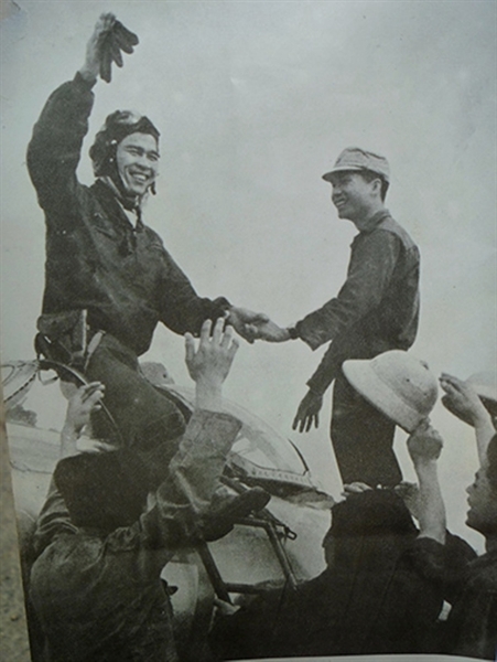 Nguyễn Văn Bảy greeted by his comrades after one of the aerial victories. He shot down seven US aircrafts during 1965-68. — File Photo