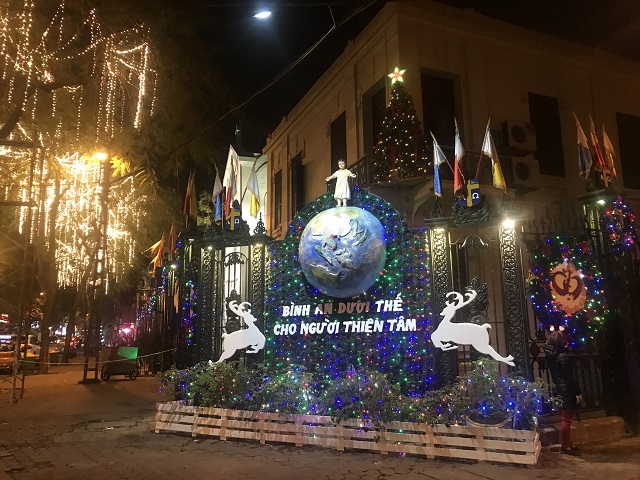 Metropole Hotel is a the premium hotel in Hanoi. At Christmas, the hotel will be brightly decorated with fanciful lights. People may wander around the area to take photos and enjoy the atmosphere of Christmas filled with love and warmth.