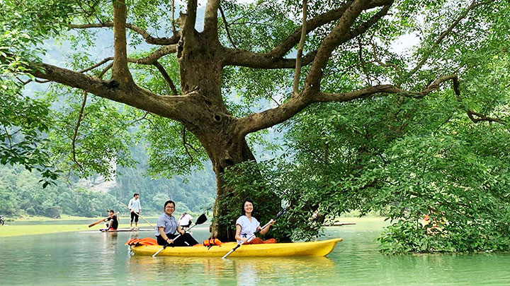 In the rainy season, Dong Lam is flooded with water. The steppe is immersed in deep blue water. At this time, visitors can paddle, kayak, fish and enjoy the fresh air of the ecological lake or board their boats on the mountainside to go climbing and explore caves. When the dry season comes, the water recedes, and Dong Lam changes its coat. It becomes a large steppe. The green grasses stretch on the fertile soil after a few months of flooding. The herds of buffalo and horses wander and graze on the grasses. The softness of water, the steadiness of rocks and the immensity of the grassland bring visitors back to the origin of the nature.