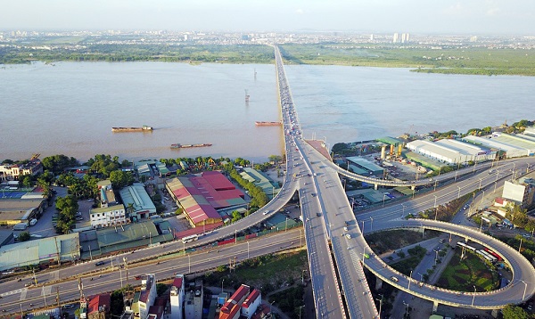The bridge helps shorten the route from the city center to National Highway 5 toward coastal localities of Hai Phong, Quang Ninh around three kilometers, reducing the load for Chuong Duong and Long Bien bridges.