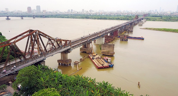 Long Bien Bridge, which comprises of the railway, roads and pedestrian roads, is severely downgraded and needs reparation constantly to keep alive the railway from Hanoi to the North of Vietnam.