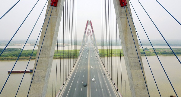 Nhat Tan Bridge was opened to traffic in January 2015. This is the first suspension bridge crossing the Red River in Hanoi with a total length of 8,900 meters with the main part of 1,500 meters long.